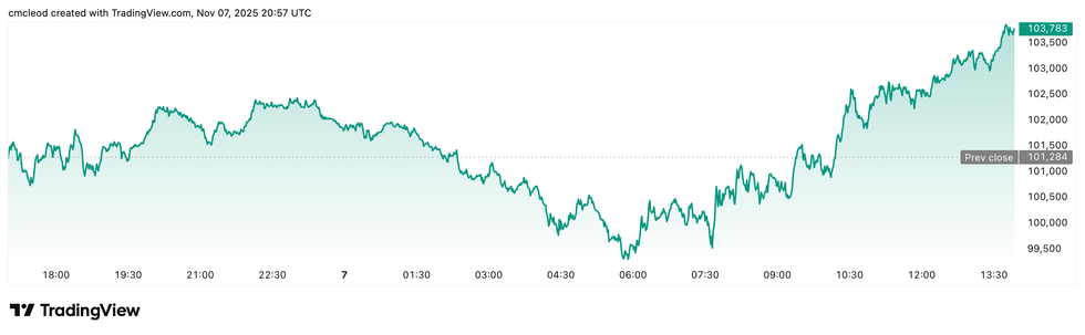 Bitcoin price performance, November 7, 2025.