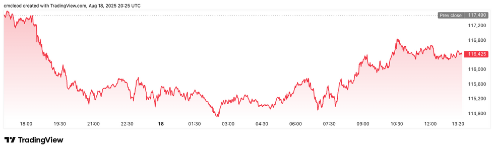 Bitcoin price performance, August 18, 2025.