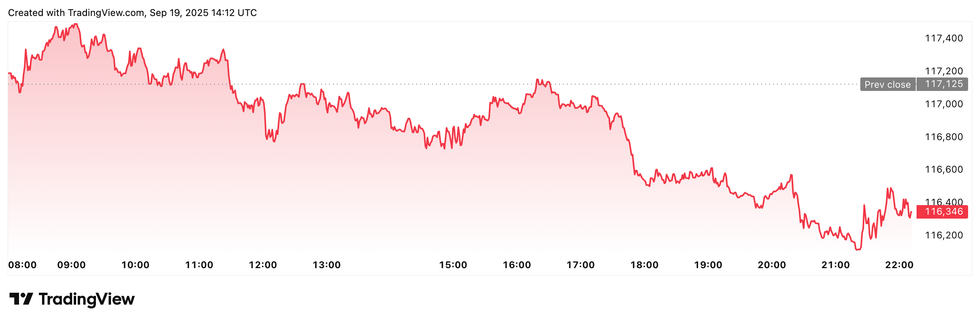 Bitcoin price performance, September 19, 2025.