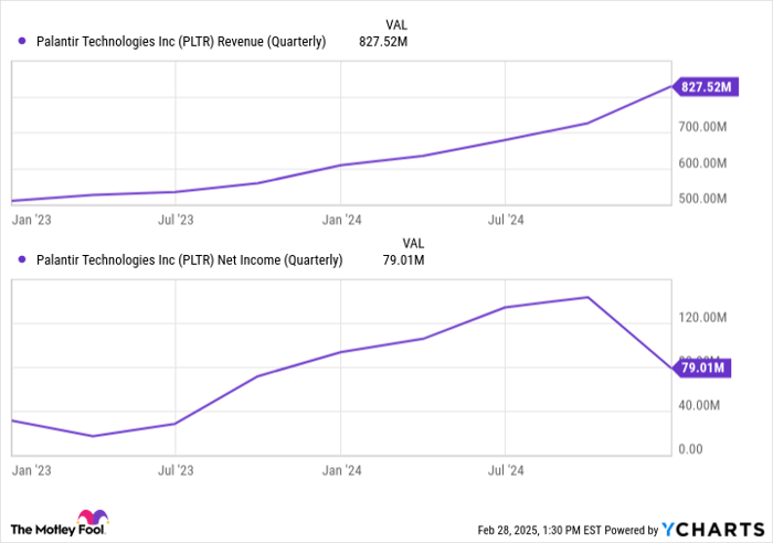 The first company on Ives’ list is Palantir Technologies (NASDAQ: PLTR), a developer of enterprise software solutions sold to both the private and public sectors. Since the company released its Artificial Intelligence Platform (AIP) suite in 2023, Palantir has witnessed an acceleration across both its top line and profitability profile.