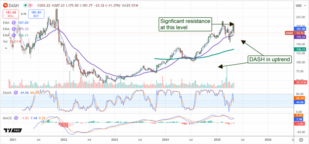 DoorDash Inc (NASDAQ:)’s stock price faces hurdles and headwinds, including high expectations among analysts and a spike in short interest, but it is in an uptrend and gaining momentum.