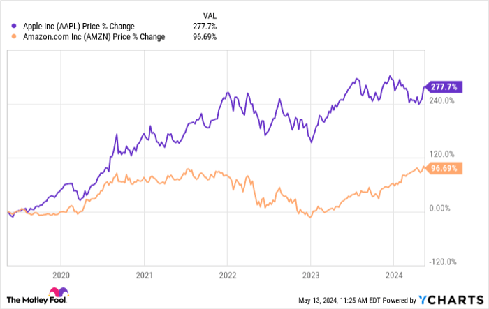 While Amazon has dazzled investors with its recent surge, the stock’s steep climb has raised the bar for new entrants. In contrast, Apple’s stock remains attractively priced due to recent setbacks.