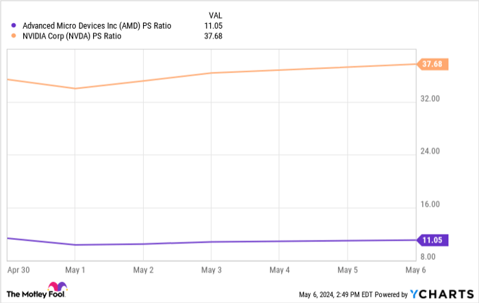 Moreover, with a significantly lower price-to-sales (P/S) ratio than Nvidia, AMD’s stock represents a compelling value proposition. The P/S metric, a quintessential valuation gauge dividing a firm’s market cap by its trailing-12-month revenue, underscores AMD’s advantageous position over Nvidia, making it a compelling option in the AI investment domain.