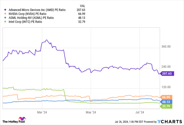 Intel’s stock trades at a Price-to-Earnings (P/E) ratio of 33, significantly lower than AMD’s towering P/E of 207. This stark difference underlines Intel’s value proposition for investors, signaling a compelling opportunity to capitalize on more grounded stock prices.