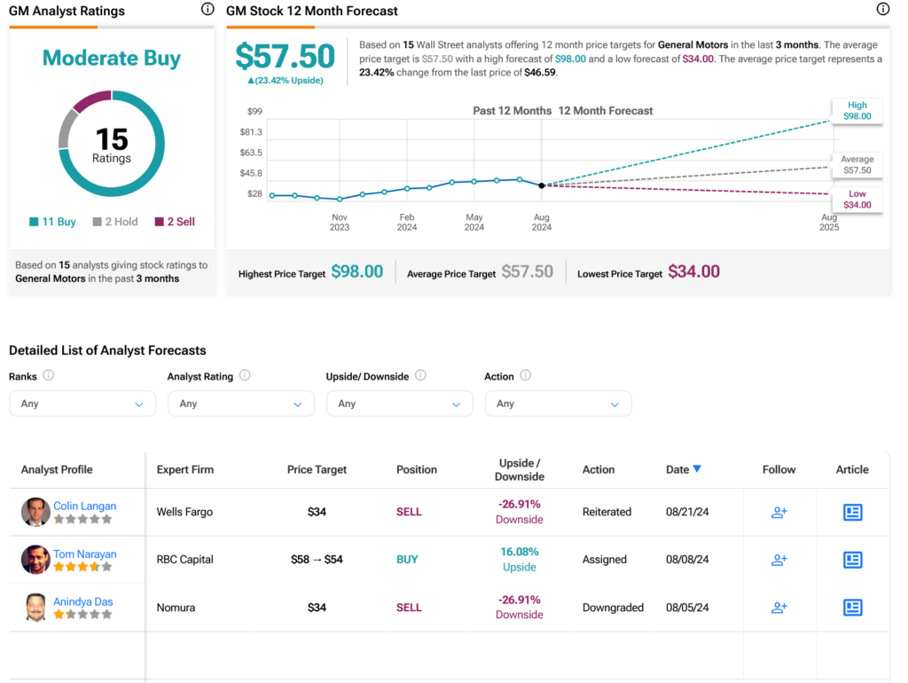 Steering our gaze to the venerable Wall Street, analysts wield a Moderate Buy consensus on GM stock, doling out 11 Buys, two Holds, and two Sells in the past quarter. Reflecting on its robust 40.16% surge in the last year, the average GM price target of $57.50 per share kindles optimism, heralding a promising 23.42% upside.