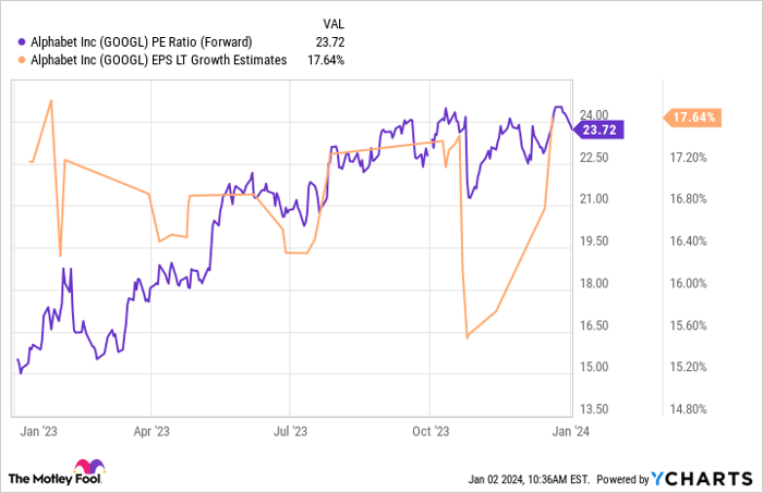 Analysts predict a long-term annual earnings growth rate of over 17% for Alphabet. This not only clears the targeted 12% by a significant margin but also provides a margin of safety. Furthermore, with a forward P/E of 24, which is a fair valuation considering the expected growth rate and a PEG ratio of 1.3, investors are poised to realize the company’s growth as investment returns, potentially doubling their investment by 2030.