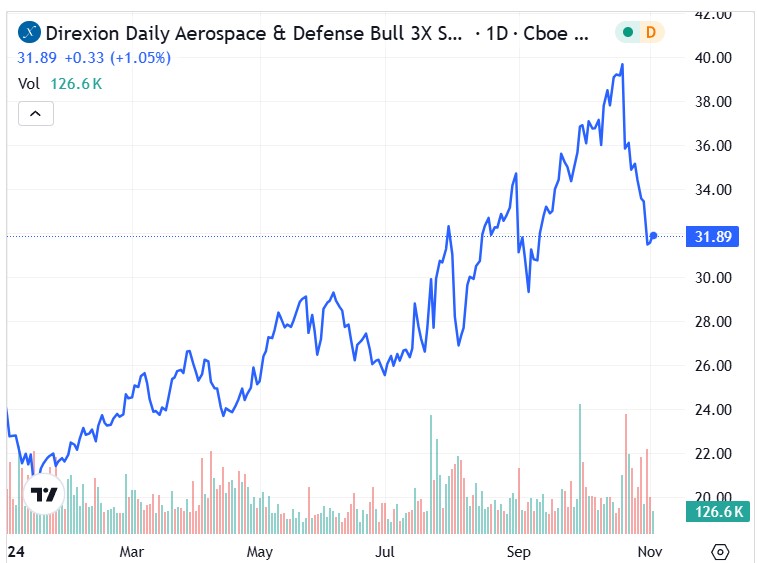 The DFEN ETF: Investors willing to speculate on an electoral victory for the Democrats may consider the Direxion Daily Aerospace & Defense Bull 3X Shares DFEN. A highly leveraged exchange-traded fund, DFEN seeks the daily investment results of 300% of the performance of the Dow Jones U.S. Select Aerospace & Defense Index.