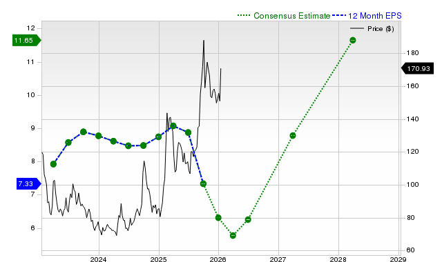 The consensus earnings estimate of $8.20 for the current fiscal year indicates a year-over-year change of -4.9%. This estimate has changed -0.1% over the last 30 days.