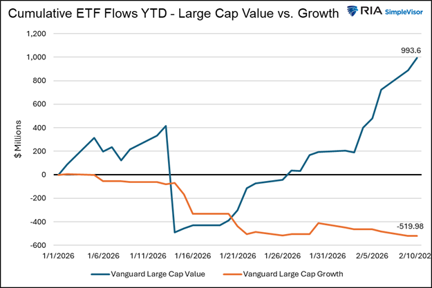 For instance, over the last few months, stocks in large-value ETFs have been hot, while the once-trendy mega-cap technology stocks have fallen out of favor. We can easily see this rotation in the performance differences between value and growth ETFs and sectors, as well as in the money flows into and out of the largest ETFs.