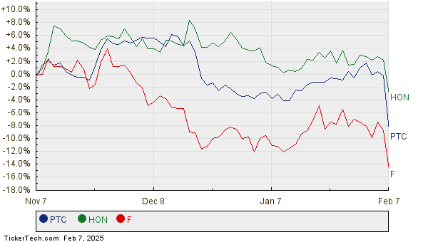 With NTSX trading at a recent price near $48.73 per unit, that means that analysts see 11.89% upside for this ETF looking through to the average analyst targets of the underlying holdings. Three of NTSX’s underlying holdings with notable upside to their analyst target prices are PTC Inc (Symbol: PTC), Honeywell International Inc (Symbol: HON), and Ford Motor Co. (Symbol: F). Although PTC has traded at a recent price of $171.61/share, the average analyst target is 20.17% higher at $206.22/share. Similarly, HON has 17.34% upside from the recent share price of $209.82 if the average analyst target price of $246.20/share is reached, and analysts on average are expecting F to reach a target price of $10.79/share, which is 16.52% above the recent price of $9.26. Below is a twelve month price history chart comparing the stock performance of PTC, HON, and F: