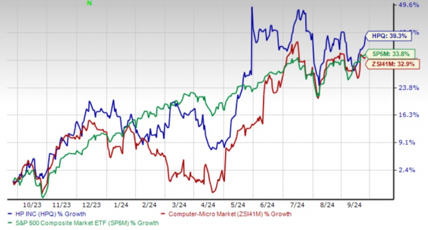HP Inc.’s shares have surged 39.3% in the last year, outpacing both the Zacks Computer-Micro Computers Industry and the S&P 500 index. This remarkable rise reflects investor confidence in HP’s cutting-edge product portfolio, particularly its significant strides in the artificial intelligence (AI) sphere.