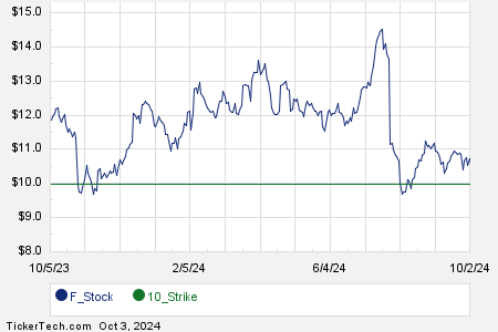 The put contract, currently at a bid of 41 cents, offers investors the opportunity to potentially acquire shares at a discount. By selling-to-open this put contract, they commit to purchasing the stock at $10.00 but also receive a premium, leading to a cost basis of $9.59 per share. This represents a 4% markdown from the current trading price, making it an attractive proposition for those eyeing an entry point into F.