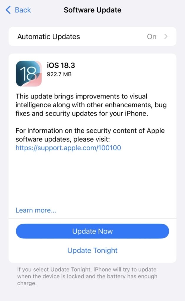 To update your device to iOS 18.3, go to Settings > General > Software Update. Download and install the update to ensure your iPhone is secure.