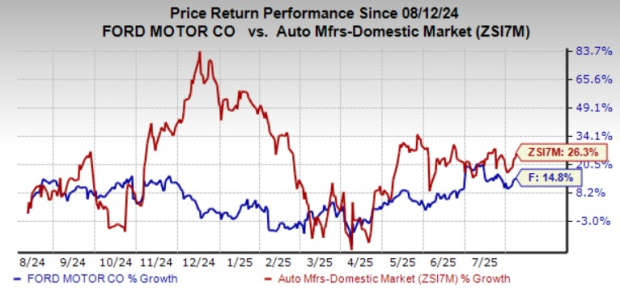 Shares of Ford have increased around 15% over the past year, underperforming the industry as well as its closest peer General Motors GM but outperforming the Italian American carmaker Stellantis STLA. While shares of General Motors have gained 24.6%, Stellantis stock has declined 38% over the same timeframe.