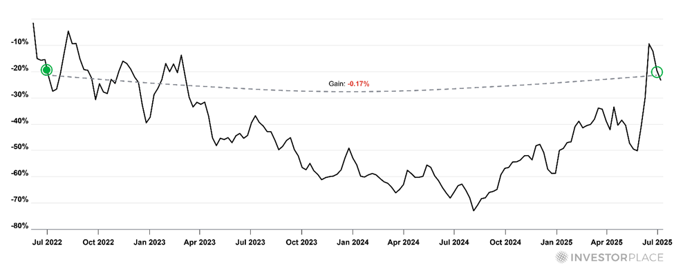 Between July 1, 2022, and July 1, 2025, MP Materials (MP) was dead money