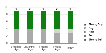 Of the nine recommendations that derive the current ABR, five are Strong Buy and one is Buy. Strong Buy and Buy respectively account for 55.6% and 11.1% of all recommendations.
