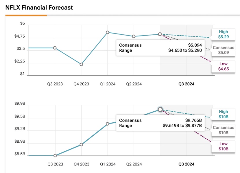 As Netflix anticipates a 14% revenue growth and an operating profit margin of 28.1% in Q3, the platform is poised for significant expansion. To outstrip market expectations, Netflix needs to outdo the $5.09 EPS target and $9.765 billion revenue projection. Despite varying analyst sentiments, with a majority revising EPS forecasts upwards, Netflix remains a promising investment target.
