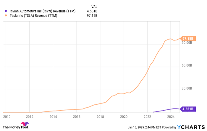 I’ve been a big fan of Rivian Automotive (NASDAQ: RIVN) for some time. The company is clearly capable of tremendous growth. When it went public in 2021, Rivian was generating annual sales of just $55 million. In 2024, annual sales surpassed $5 billion.