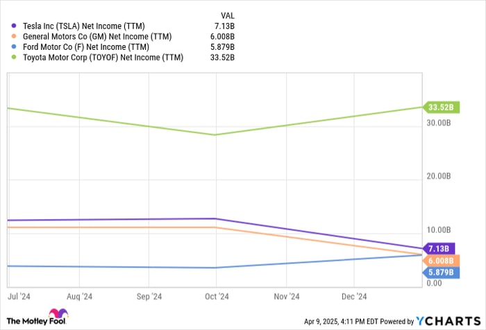 Here’s the thing: Tesla isn’t growing sales. In fact, its vehicle sales are shrinking. The company’s latest delivery report showed it had delivered just 336,681 vehicles in the first quarter, making it the worst quarter for deliveries since 2022. We are still several weeks out from Tesla’s earnings call, in which more details will come to light, but as of Tesla’s 2024 report, the once double-digit year-over-year (YOY) revenue growth the company enjoyed is gone. Its sales grew by less than 1% from 2023 to 2024.
