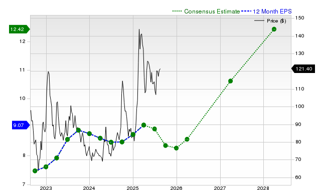 The consensus earnings estimate of $8.20 for the current fiscal year indicates a year-over-year change of -4.9%. This estimate has changed -0.1% over the last 30 days.