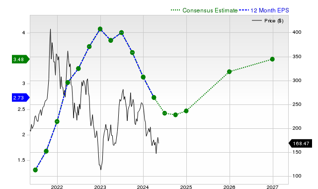 Anticipated earnings of $2.47 per share for the ongoing fiscal year signify a -20.8% year-over-year shift. This estimate has been nudged down by -4.7% in the last month.