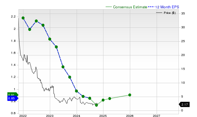 The consensus earnings estimate of $0.82 for the current fiscal year indicates a year-over-year change of -15.5%. This estimate has changed +38.8% over the last 30 days.