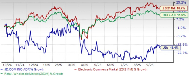 JD.com JD shares have plunged 18.4% in the past year, underperforming the Zacks Internet-Commerce industry’s growth of 18.7% and the Zacks Retail-Wholesale sector’s return of 11.6%. The decline reflects cautious sentiment toward JD’s shifting business mix, near-term margin pressures and slower cash flow recovery as it invests in new verticals and international operations.