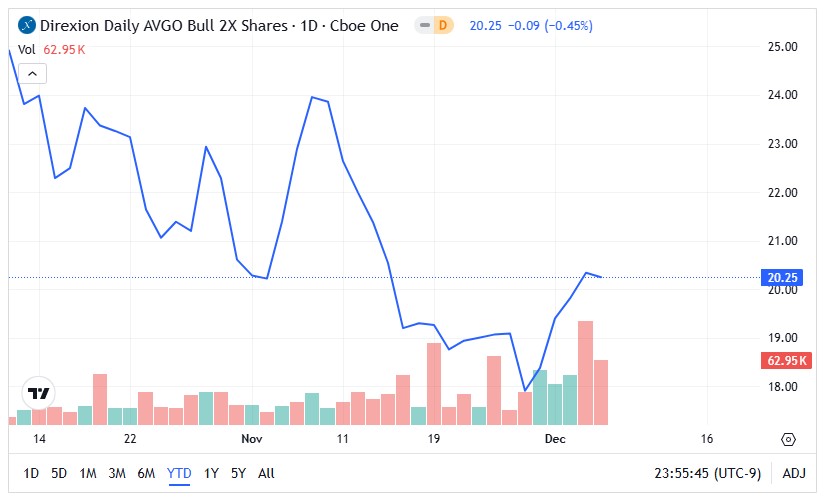 The AVL ETF: A relatively new product, AVL is down 19% since its introduction. However, the strong performance of AVGO stock recently has led to an almost 12% lift over the past five sessions.