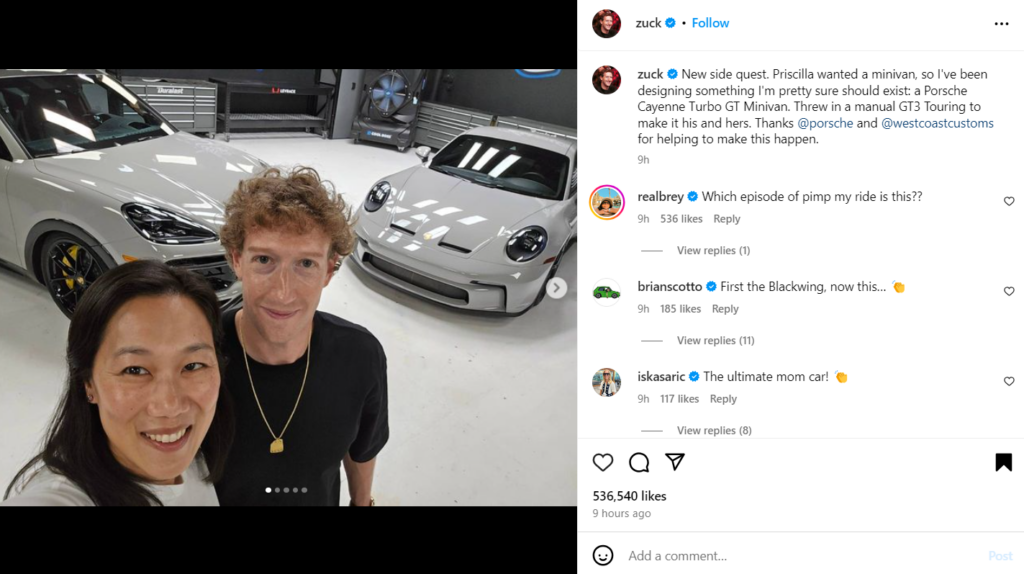 CEO Mark Zuckerberg, renowned for his innovation in the tech world, is now delving into a whole new realm: automotive design. Embracing a surprising side quest, Zuckerberg is spearheading the transformation of a Porsche Cayenne Turbo GT into a minivan for his wife, Priscilla Chan. This unexpected customization project was brought to light through an Instagram post by the CEO.