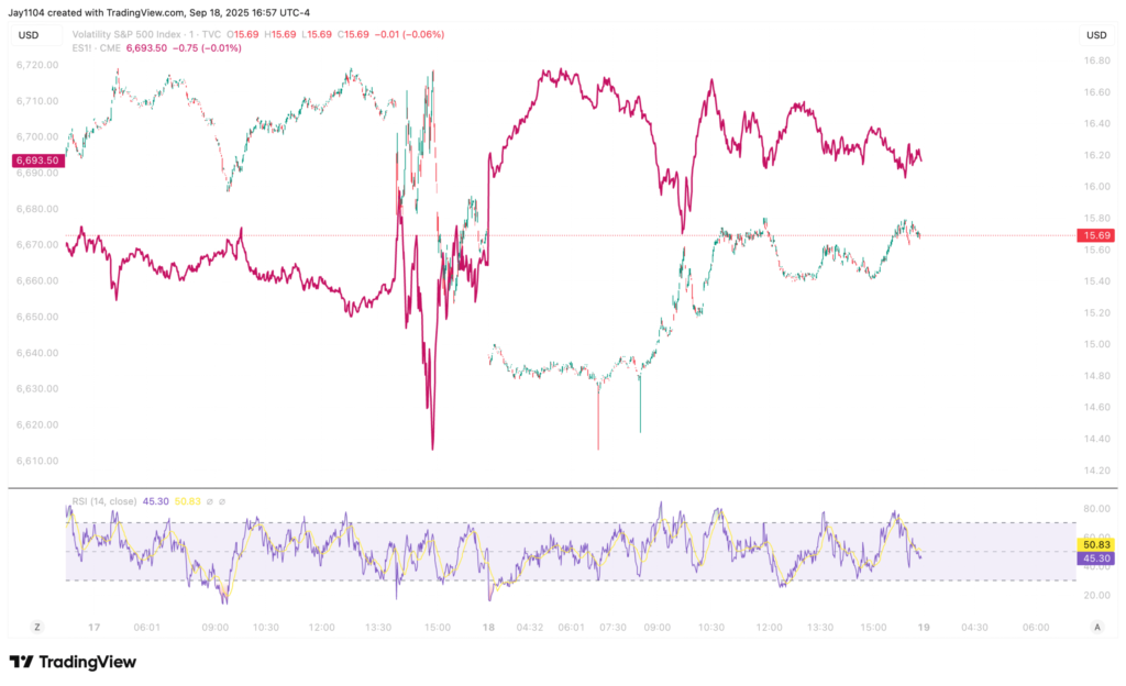 Yesterday’s open just looked like leftover volatility that didn’t reset at the end of the day on Wednesday. The opened lower, futures traded up with that lower open, and then moved inversely to volatility all day. At this point, the volatility reset seems complete.S&P 500 Volatility Index Chart