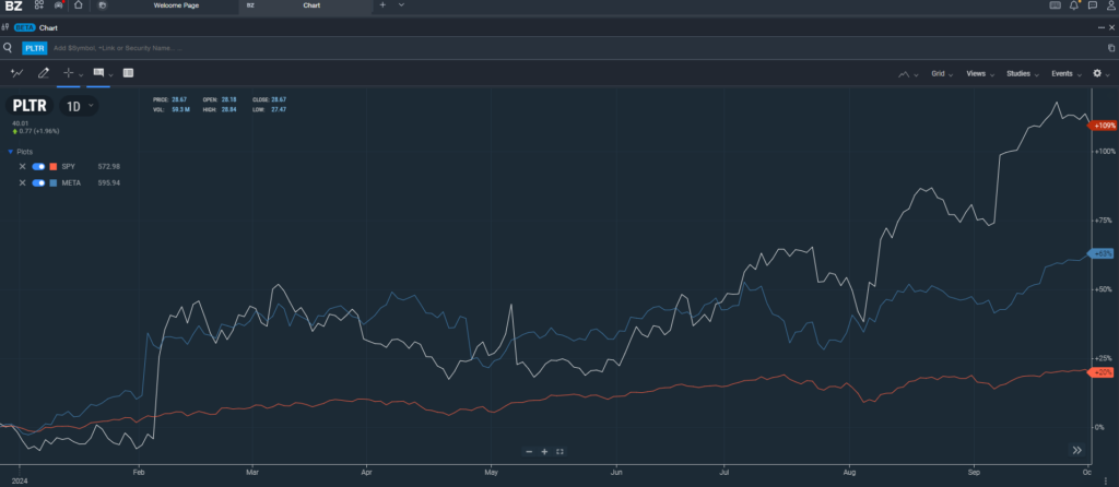 Both Meta and Palantir have outshined the broader market’s performance, exemplified by the SPDR S&P 500 ETF Trust that tracks the S&P 500 Index.