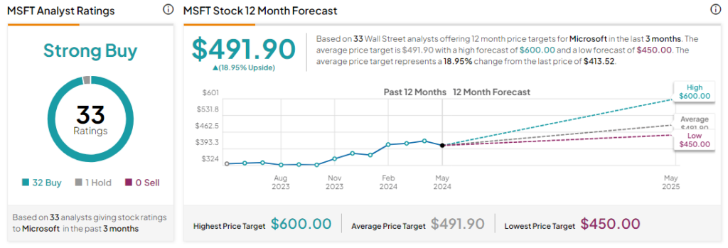 Despite the recent allegations, analysts maintain a positive outlook on MSFT stock, with a Strong Buy consensus rating backed by 32 Buy recommendations and one Hold. Microsoft’s stock has shown a more than 10% rise year-to-date. The average price target for MSFT stands at $491.90, indicating a potential upside of 18.9% from its current trading levels.