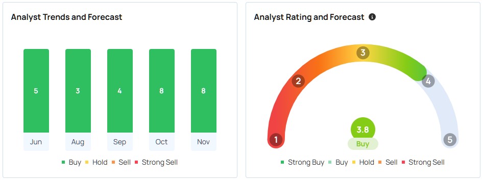 The MicroStrategy stock has a consensus rating of “Buy.” The highest price target is $690, while the consensus price target is $449.50, implying a 16% upside.