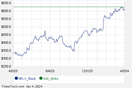 On the converse side of the option spectrum, the call contract at the $640.00 strike point garners attention with a $36.20 bid. For an investor procuring Netflix shares at the current $634.15 threshold and subsequently vending this call contract as a “covered call,” the commitment involves selling the stock at $640.00. The call seller benefits from the premium, thereby potentially netting a 6.63% total return (excluding dividends) if the stock is called away at the May 24th expiration (before broker fees).