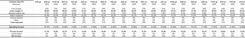 The company has encountered operational challenges in recent times, with operating income growth only occurring in 2 out of the last 11 quarters, mainly attributed to past inventory issues which have now been resolved.