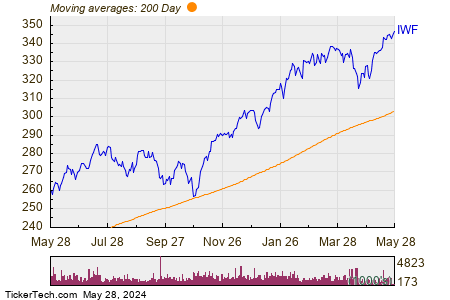 The one-year price comparison graph displayed below unveils the journey of IWF against its 200-day moving average, illustrating a significant upward trajectory. Delving deeper into the chart, we identify IWF’s year-low at $256.01 per share with a dazzling year-high of $348.065, topping off at the most recent trade of $346.84. This analytical approach also brings to light the relevance of understanding the 200-day moving average in the realm of technical analysis.