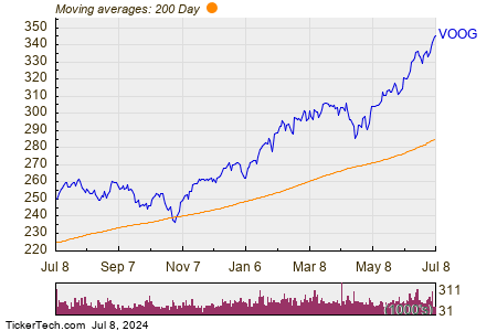 Delving into the price performance of VOOG over a year, relative to its 200-day moving average, unveils insightful trends. Using the 52-week range, VOOG has shown a low point of $236.38 per share, with the high point reaching $346.12. This data contrasts with the latest trade value of $345.65. An analysis comparing the most recent share price to the 200-day moving average presents a valuable technical perspective.