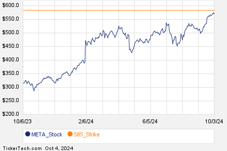 Driving this momentum is the $585 strike put option expiring on October 04, 2024, which witnessed a staggering 36,921 contracts traded thus far, translating to approximately 3.7 million underlying shares of META. This uptick in activity paints a vivid portrait of market sentiment and potential volatility in the days ahead.