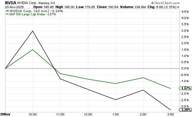 But the market turned mid-morning. The S&P finished the day down 1.5% with Nvidia down more than 3%.