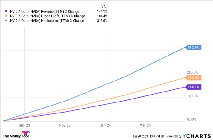 The trajectory of Nvidia’s revenue, gross profit, and net income over the past year showcases robust growth on multiple fronts, underpinned by accelerating profitability outpacing revenue expansion.