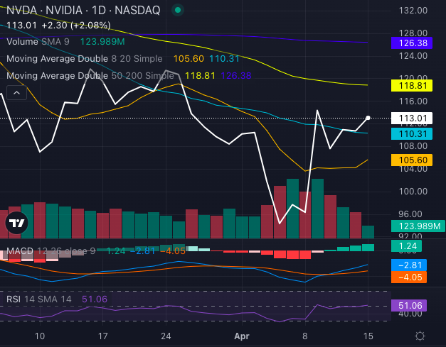 Despite a slightly sluggish stock (down 5.23% in the past month), NVDA stock’s eight-day and 20-day simple moving averages flash bullish signals, giving bulls a reason to stay optimistic.