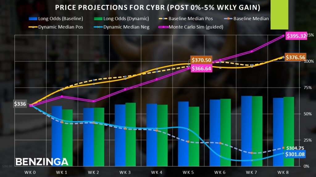 At the moment, CYBR stock is on pace to rise around 3% this week. Modest momentum like this does little to change the equity’s behavioral dynamics — such parameters statistically yield a similar magnitude of upward mobility.