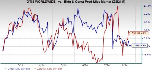 Despite a modest 1.2% uptick in the share price in the last six months, Otis, a prominent manufacturer of elevators, escalators, and moving walkways, lags behind the 4.2% growth of the Zacks Building Products – Miscellaneous industry. However, with a steadfast commitment to innovate and expand its digital ecosystem and suite of solutions, Otis is all set to chart a new course in the foreseeable future.