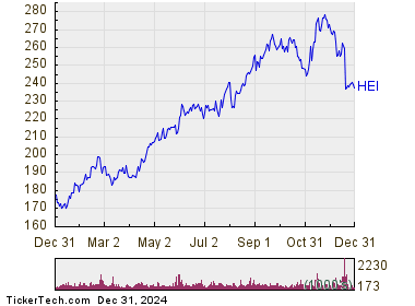 Looking at the chart above, HEI’s low point in its 52 week range is $169.70 per share, with $283.60 as the 52 week high point — that compares with a last trade of $238.10.