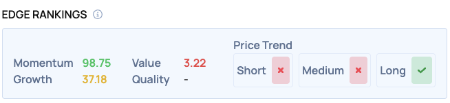 Palantir demonstrates strong momentum, according to Benzinga Edge ranking with a sustained long-term uptrend, though its low-value score suggests potential overvaluation while growth remains moderate.