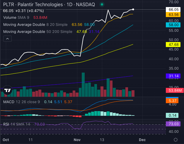 These technical signals underscore a strong uptrend, with PLTR’s Moving Average Convergence Divergence (MACD) at 5.51, another indicator of a buying opportunity.