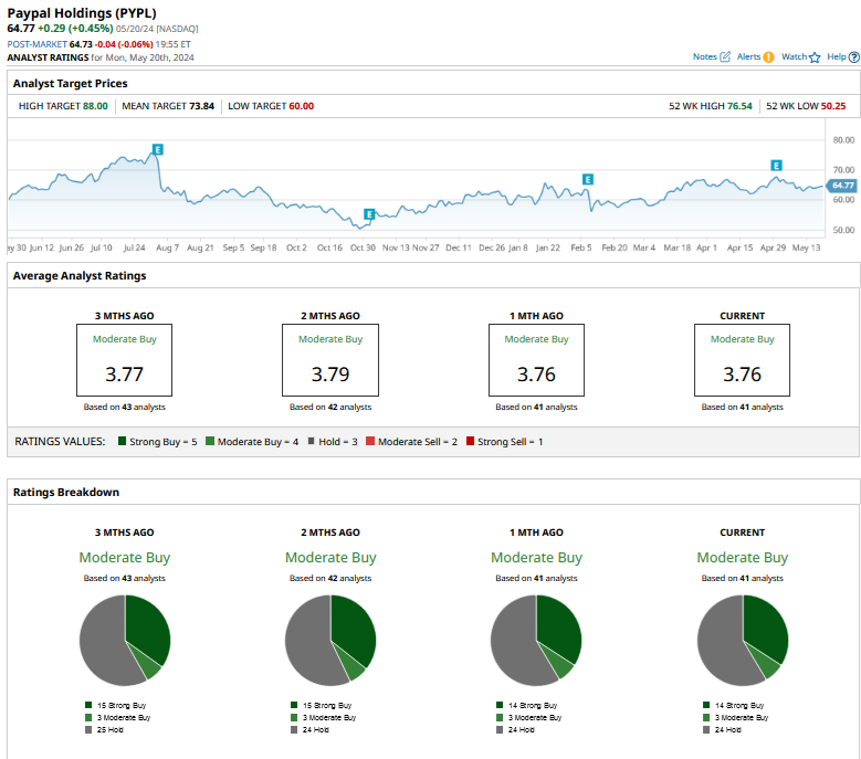 Market analysts opine that PayPal deserves a “Moderate Buy” rating, reinforcing a tepid confidence among investors. A mean price target of $73.84 reflects a 15% premium over the current prices, while a street-high target price of $88 indicates a substantial 37.3% valuation boost.