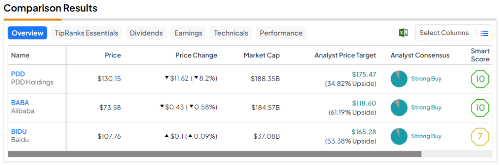 While prevailing turbulence and negative economic headlines cast doubt on China’s tech plays, these stocks present deep value opportunities in the grander scheme of things. Among the three Strong Buy-rated stocks, analysts see the most upside potential in BABA (61.2%) for the year ahead.