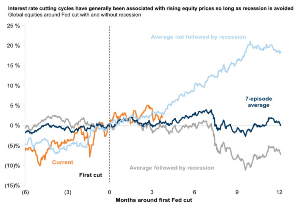 Under the Trump Administration, I’d argue the Federal Reserve will continue to cut interest rates. When you pair these rate cuts with a healthy economy you get the below chart — history tells us we could experience double-digit gains.