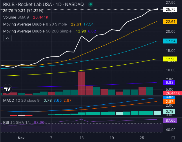 Rocket Lab’s stock has been an investor’s dream, skyrocketing 495% in the past year, 479% in six months, and 125% in just the last month.